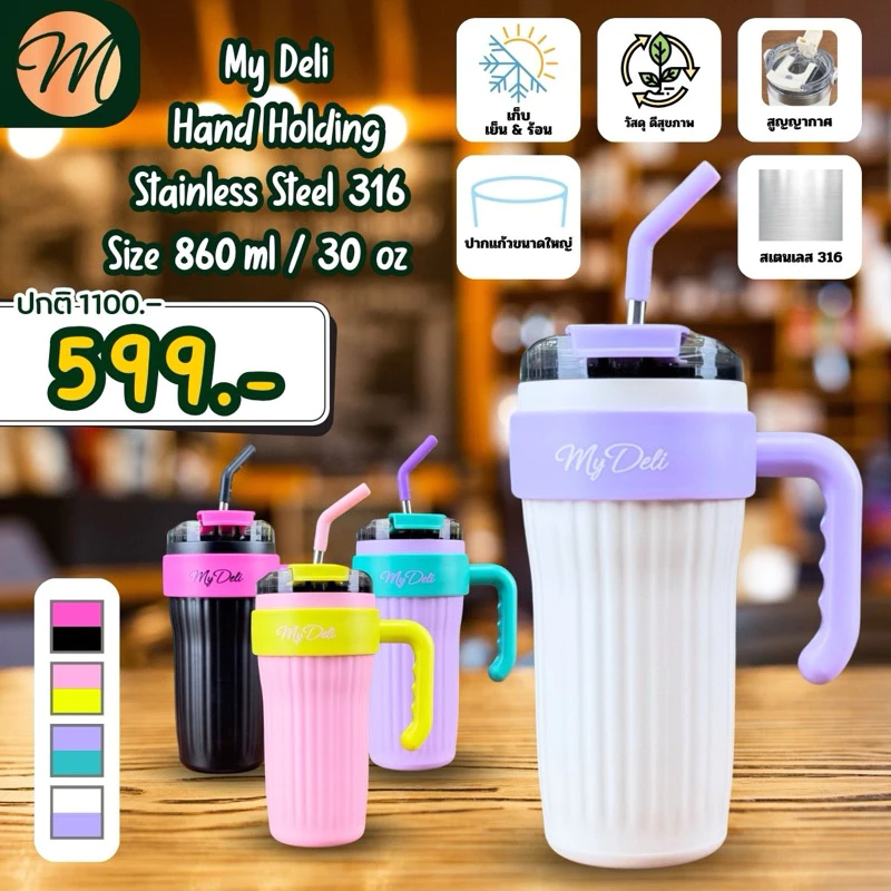 My Deli Hand Holding แก้วสเตนเลสมีมือจับ ขนาด 816 ml.
